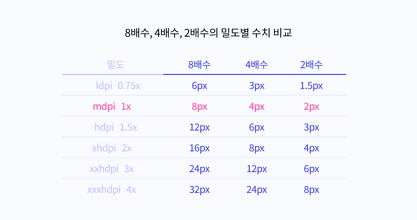 1. 8 배수 단위로 디자인 후 각 밀도 버전으로 내보내기