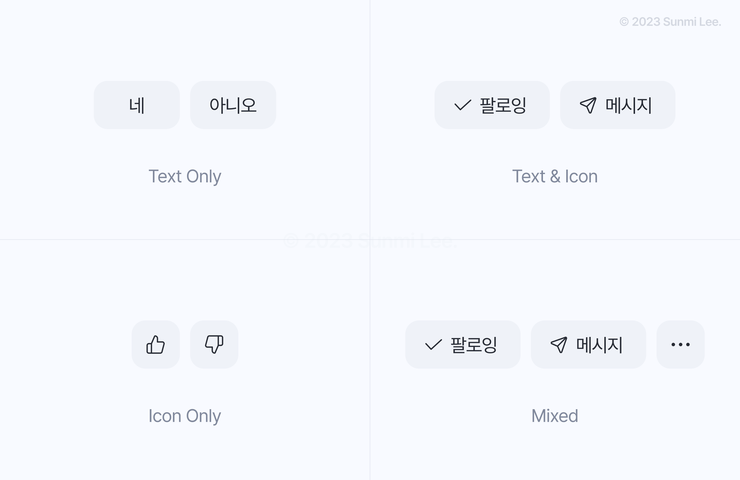 다양한 종류의 버튼이지만 동일한 간격이기 때문에 일관성을 유지할 수 있다.